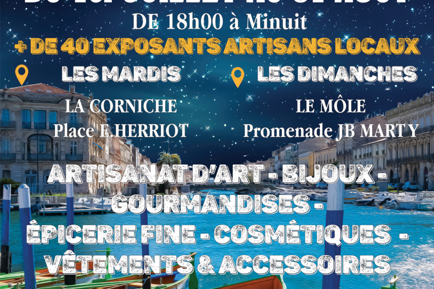 Les Nocturnes de 7 Artisanal, tous les mardis sur la Corniche, place E. Herriot du 1er juillet au 31 août 2025, de 18h à minuit.