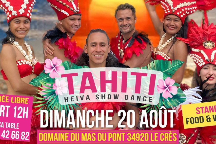 La cèlèbre troupe HEIVA TAHITI DANCE SHOW t'emportera au son du Ukulélé / entrée libreDOMAINE MAS DU PONT 34920 LE CRÈS