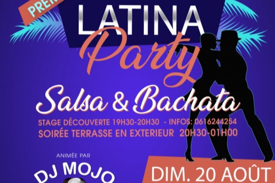 Claudie et Christian , propriétaires du lieu, auront le plaisir de vous accueillir dans ce superbe endroit tout à fait adapté à l’événementSoirée dansante en Extérieur avec un stage découverte de Salsa et Bachata de 19:30 à 20:30 (Assuré par DJ MOJO )Début de la soirée de 21:30 à 01:00Grand parking à dispositionRestauration possible sur placePAF : 5€ (Gratuit pour la première)