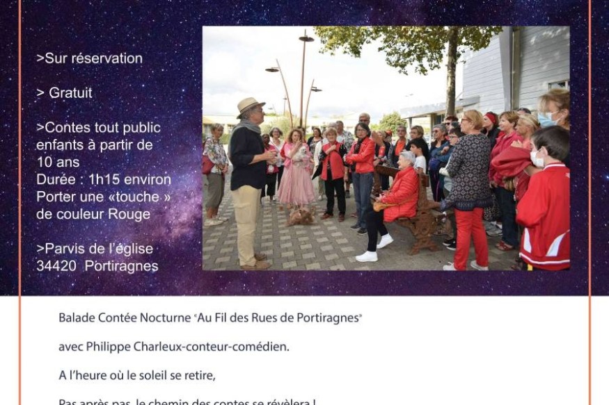 A l’heure où le soleil se retire,Pas après pas, le chemin des contes se révèlera !Dans …, de place en place, de ruelle en ruelle, de maison en maison,Les histoires savoureuses, demandent des oreilles complices !