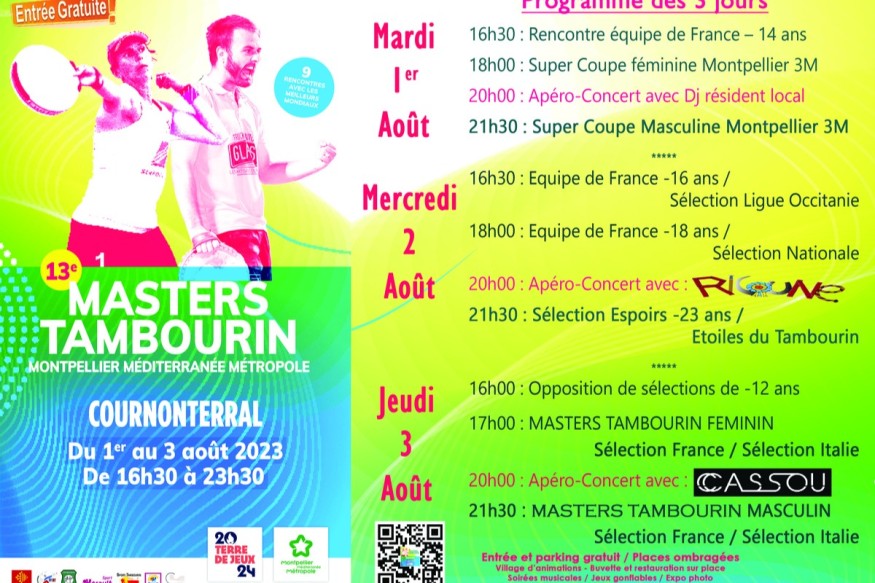 Du 1er au 3 août ne manquez pas la 13ème édition des Masters Tambourin au Terrain Max Rouquette de Cournonterral.