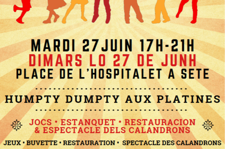 L’association Bona Jornada en partenariat avec la Calandreta Dels Dalfinets organise le TOTAL FESTUM, mardi 27 juin de 17h à 22h. Au programme : des jeux pour enfants, des barbapapa, un stand buvette et restauration, et sur scène :
