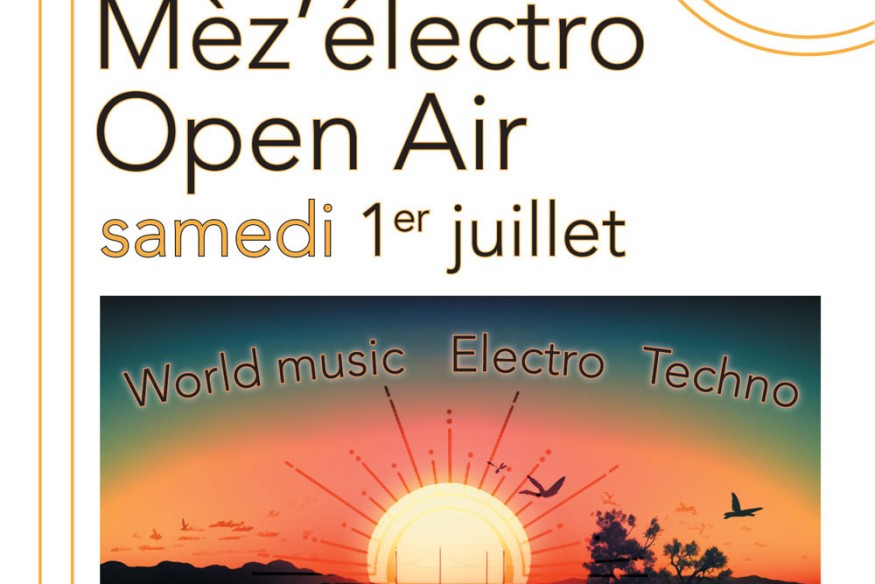 Soirée familiale « Mèz’électro Open Air » 17h préau du Sesquier |tarif 10€ |gratuit pour les – de 16 ans accompagnés d’un adulte |stands artisanaux, brasseries de bières locales, domaines de vins bio & foodtrucks locaux sur place