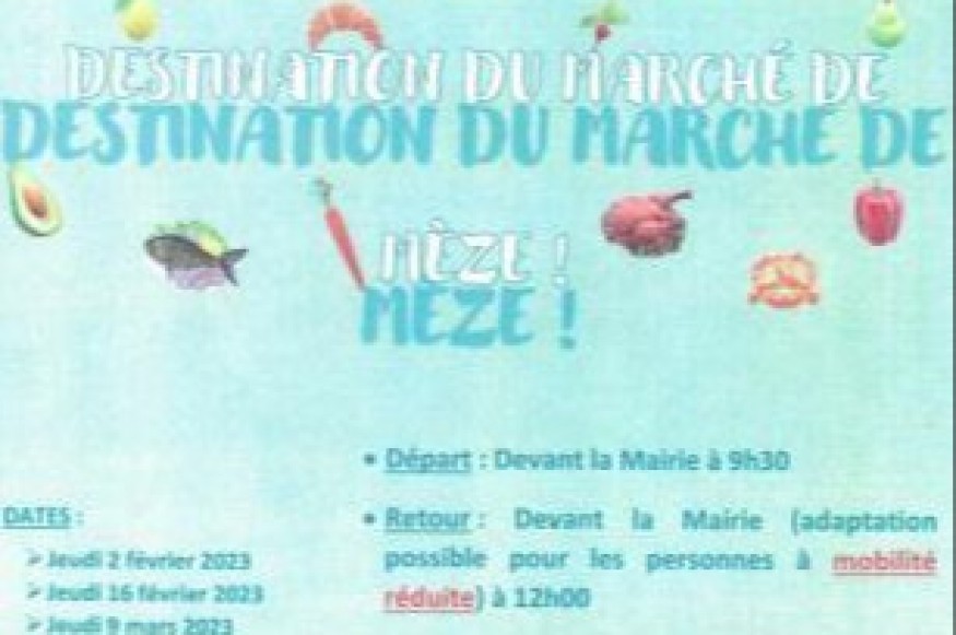 Prochaines navettes à destination du Marché de Mèze jeudi 16 février, jeudis 9 et 23 mars, jeudis 6 et 20 varil
