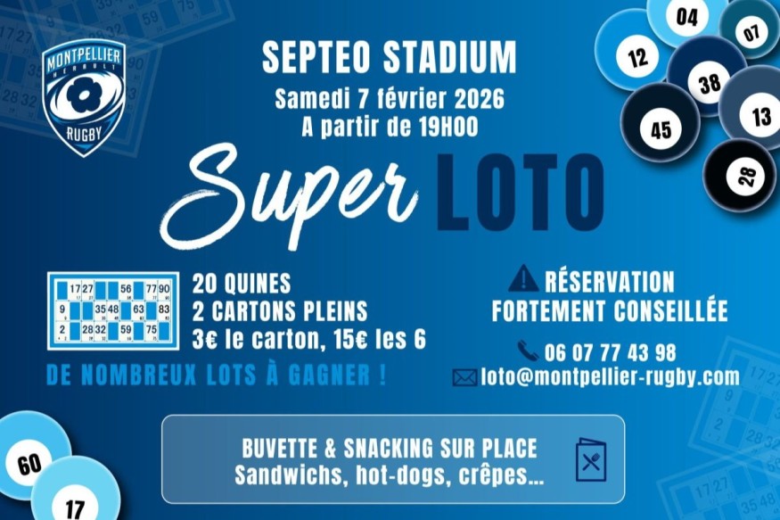 L’Association du MHR, organise un grand événement convivial et solidaire : le Super Loto du MHR.Rendez-vous le samedi 7 février 2026 à partir de 19h au Salon VIP du Septeo Stadium.