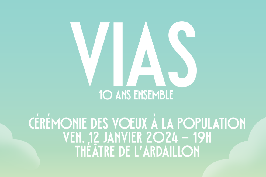 Jordan Dartier, maire de Vias Méditerranée, et son Conseil Municipal vous donne rendez-vous le vendredi 12 janvier à 19h au Théâtre de l'Ardaillon pour la traditionnelle cérémonie des Vœux à la population !