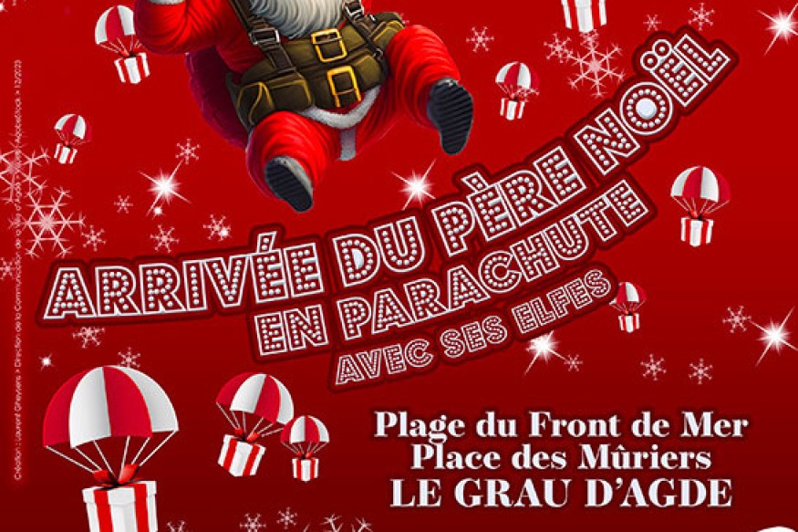 Le Père Noël fera une halte au Grau d’Agde avec une arrivée rocambolesque en parachute sur la plage du Front de Mer.