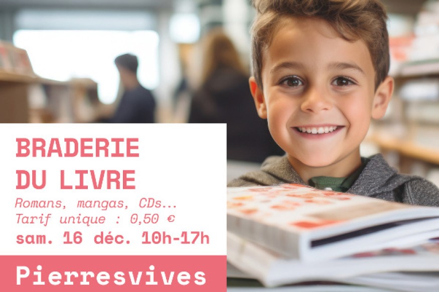Pierrevives 14 000 ouvrages (incluant livres, BD, mangas et CD) sont proposés à des prix très bas (50 centimes d’euro par pièce, avec une limite de 10 pièces par personne).