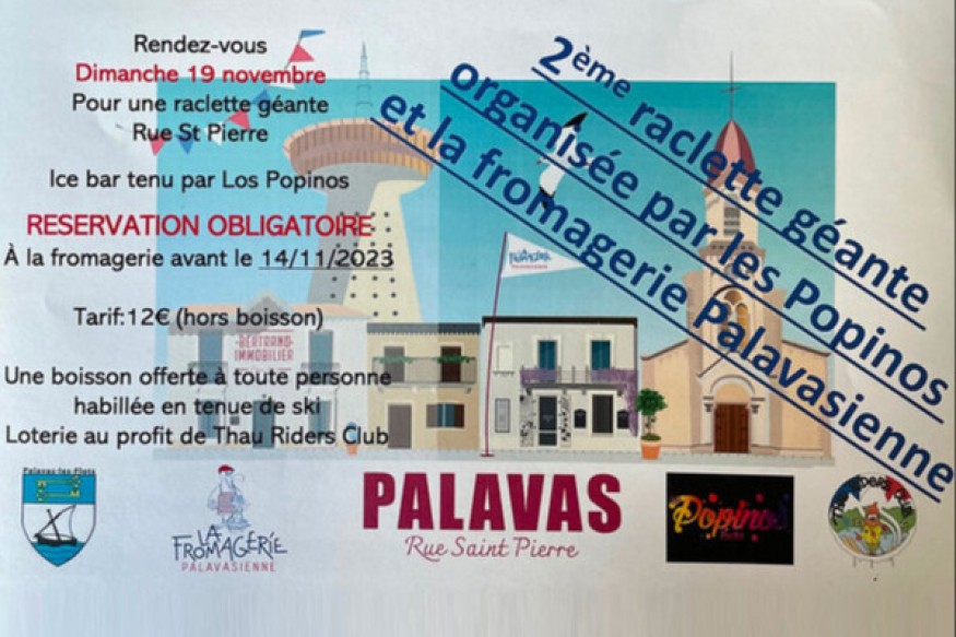 Venez vous régaler à la 2éme édition de la “Raclette géante” organisée par Los Popinos et la Fromagerie Palavasienne ce dimanche 19 novembre à midi, rue Saint-Pierre.
