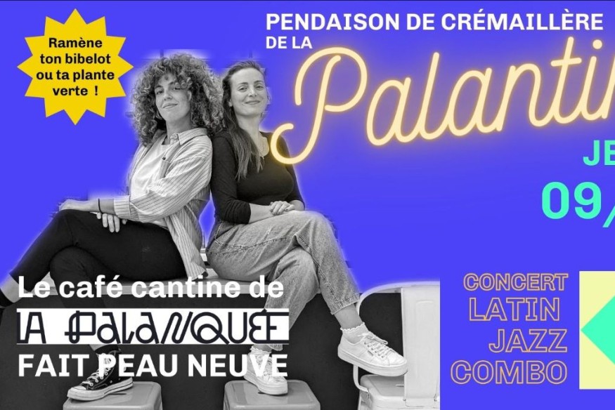 Pendaison de crémaillère de la « Palantine » Jeudi 9 novembre de 17h à 20h! Le café cantine de La Palanquée fait peau neuve ! Venez découvrir « La Palantine » une nouvelle formule proposée par un duo pétillant composé de Manon et Aurélie. Réouverture jeudi 9 novembre à partir de 17h avec au menu, bonne bouffe, bon concert et bonne humeur. Venez pendre la crémaillère avec nous et ramenez pour l’occasion un bibelot, une plante ou un objet de déco pour illuminer les lieux !