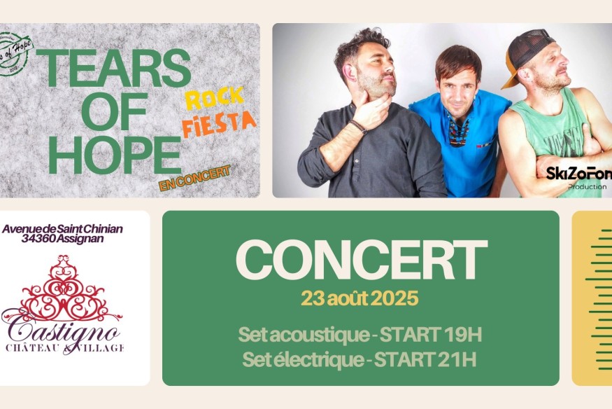 TERS OF HOPE - Live au Château Castigno - GRATUIT Cave du Château Castigno – Villespassans (34) Samedi 23 août 2025 19h (acoustique intime) / 21h (concert électrique)