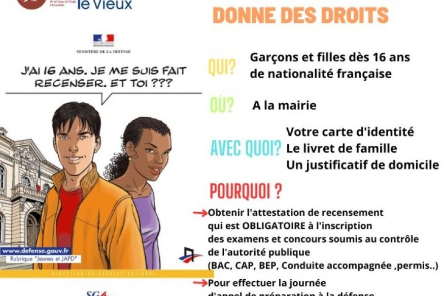 Vous êtes Français et vous allez bientôt avoir 16 ans ?Rendez-vous en Mairie pour faire le recensement citoyen OBLIGATOIRE.