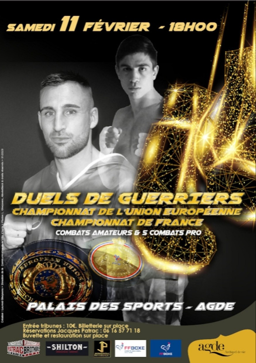 Samedi 11 février dès 18h au Palais des Sports d'Agde, soirée de boxe "Duels de guerriers"!
