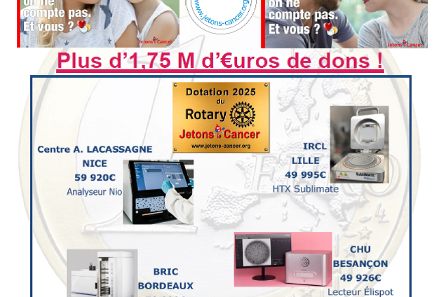 Le Rotary-Club d’Agde–Cap d’Agde lance, pour la 11? année consécutive, son opération solidaire « Jetons le cancer », une collecte de fonds destinée à soutenir la recherche contre le cancer.