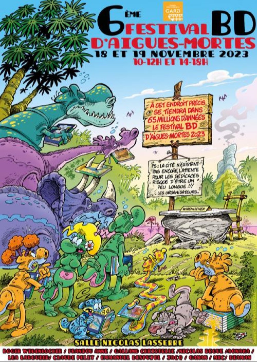 Les amateurs de bandes dessinées retrouveront avec plaisir, pour sa 6e édition, le Festival de BD. Les organisateurs, Laurent Barcelo et Christian Rigal et leur équipe, ont invité une douzaine de dessinateurs à l’imaginaire foisonnant. Ils accueilleront Roger Widenlocher qui viendra de sa Bretagne pour dédicacer avec la coloriste Anne Franjou, leur dernier ouvrage Nabuchodinosaure. Participent également : Christelle Galland (L’Elixir de Dieu, Manon des sources, Jean de Florette) ; Nicolas Bègue (Hérauts, Métal hurlant, Le Ravageur) ; Emmanuel Despujol (Aspic détective de l’étrange, Side show, La Mort n’est pas une fin) ; Jacq, qui vient de Belgique (Aujourd’hui sera pire que demain, Paul et Tom) ; les régionaux, Léa Larguier de Saint-Brès dans l’Hérault (Histoire du manga et techniques graphiques japonaises) ; Diaman Farenc de la Grande Motte (Il fait quoi Diaman) ; Claude Pelet de Lunel (Hikari fantasy, Sasmira) ; Olivier Ganan (Bande de blaireaux, Males a bar) ; Mic (Echer épate, Le Monde de Damien) et le régional de l’étape, l’aigues-mortais Aonaka pour ses Contes et Mythes japonais (dont Issun-Bochi et La Gratitude d’une grue).