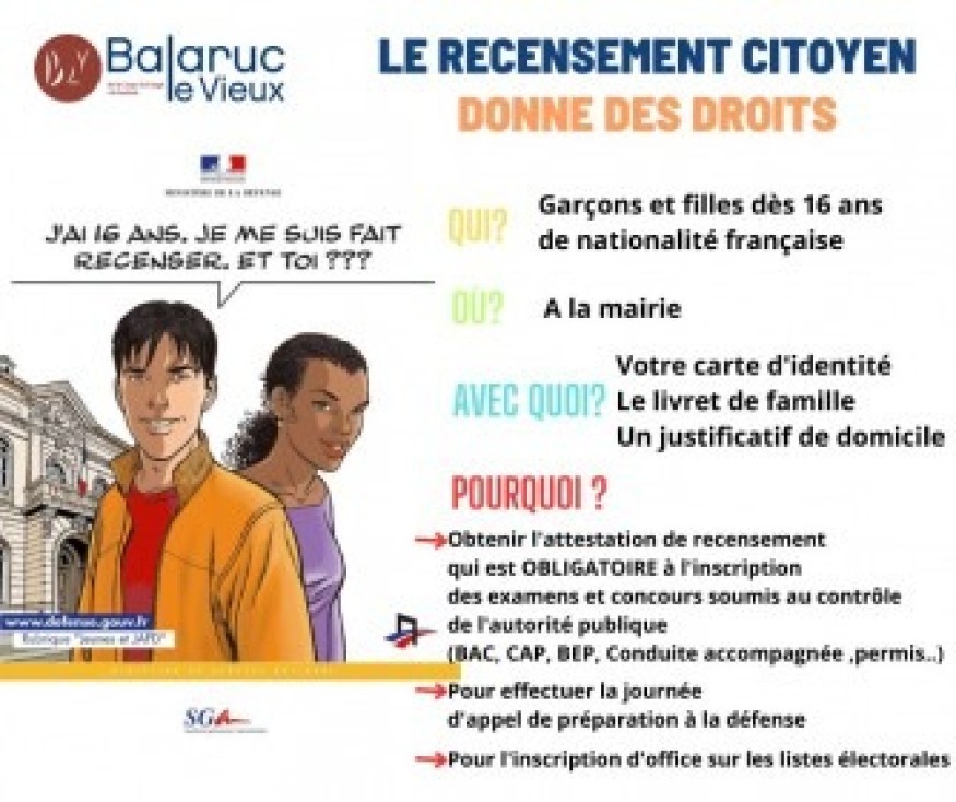 Vous êtes Français et vous allez bientôt avoir 16 ans ? Rendez-vous en Mairie pour faire le recensement citoyen OBLIGATOIRE.