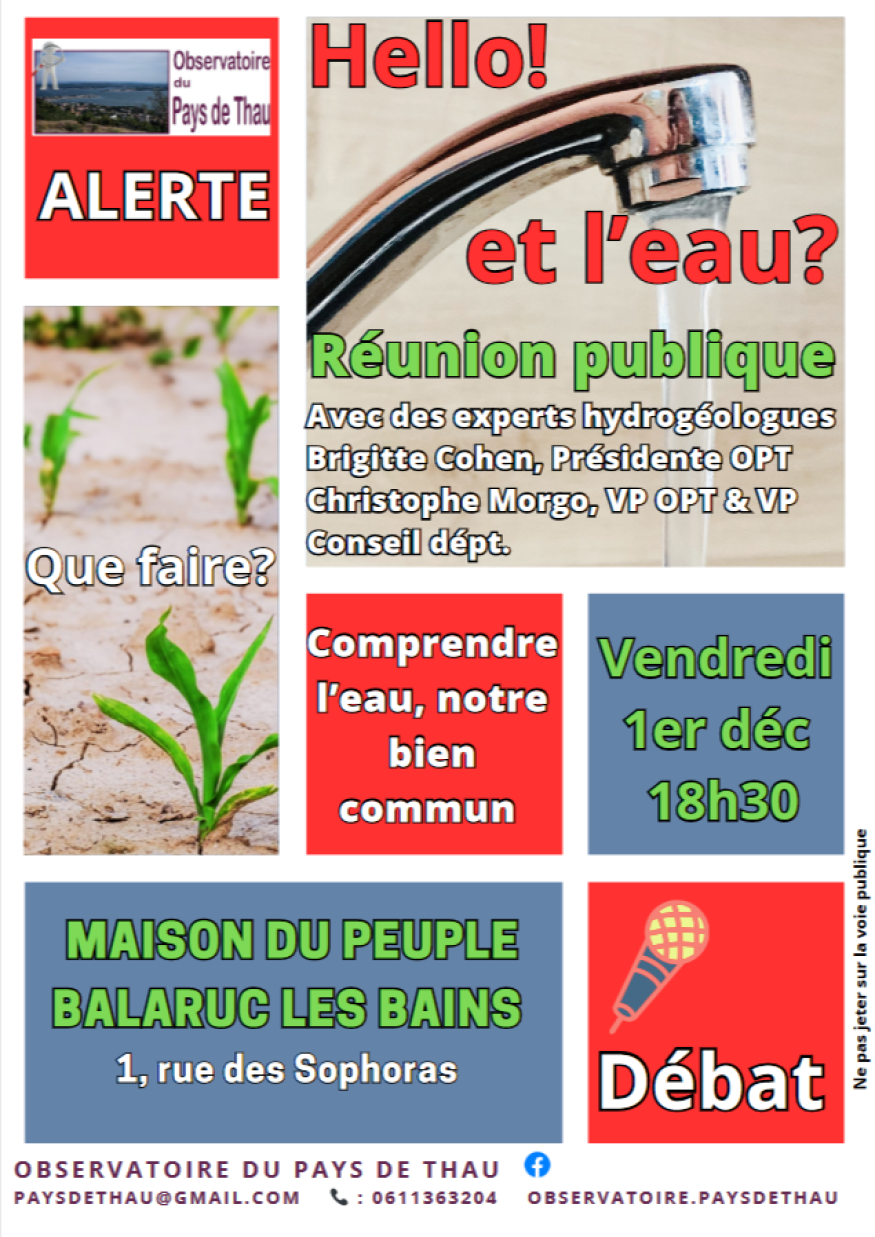 Réunion publique vendredi 1ier Décembre à 18 h 30 Maison du Peuple à Balaruc le Bains