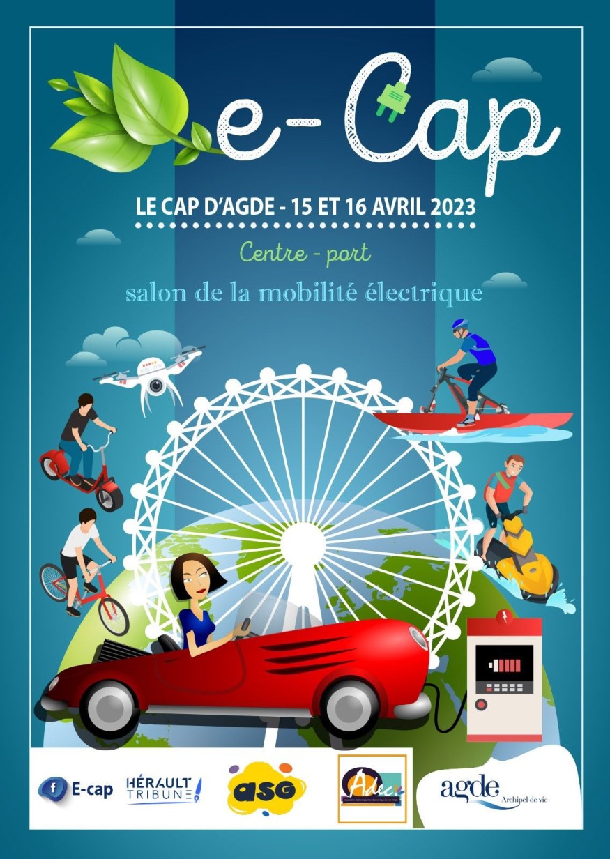 La 5ème édition du Salon de la mobilité électrique se tient au Cap d’Agde les 15 et 16 avril 2023 Les nouvelles mobilités sont en plein essor et les nouveautés fleurissent sur ce marché. C’est dans ce cadre que le Cap d'Agde accueille la 5ème édition de « e-Cap », le 1er salon héraultais dédié à la mobilité électrique, les samedi 15 et dimanche 16 avril 2023. Organisé par l’Association « GSA E-Cap », avec le soutien de la Ville d’Agde, le Salon se tient au Centre Port du Cap d'Agde, au pied de la grande roue, elle-même électrique.