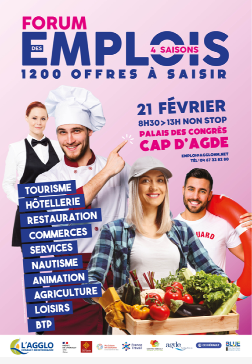 Organisé par Communauté d'Agglomération Hérault Méditerranée et ses partenaires pour l’emploi, cet événement constitue un véritable temps fort de rencontres entre employeurs et candidats.