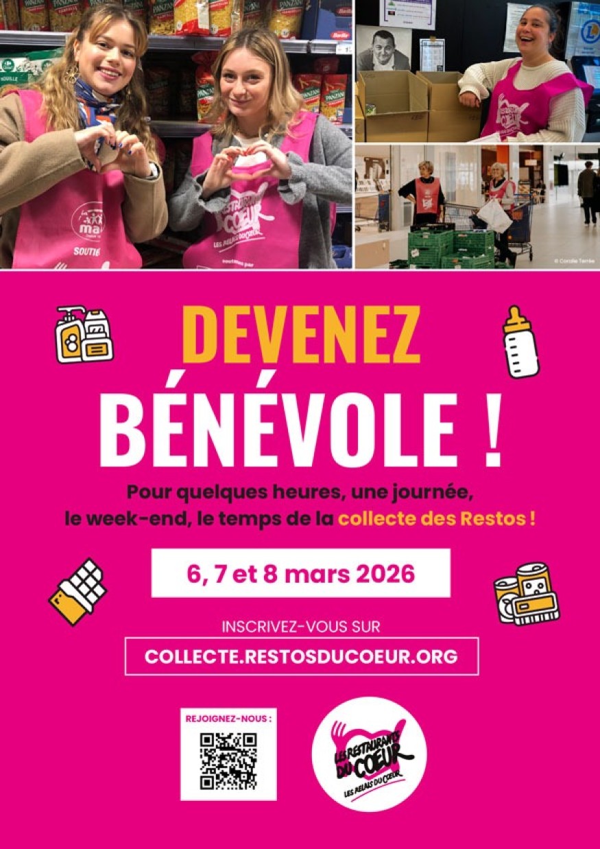 Dans l’Hérault et partout en France, rendez-vous les 6, 7 et 8 mars pour la Collecte des Restos 2026, temps fort solidaire et convivial de l’association des Les Restos du Cœur.