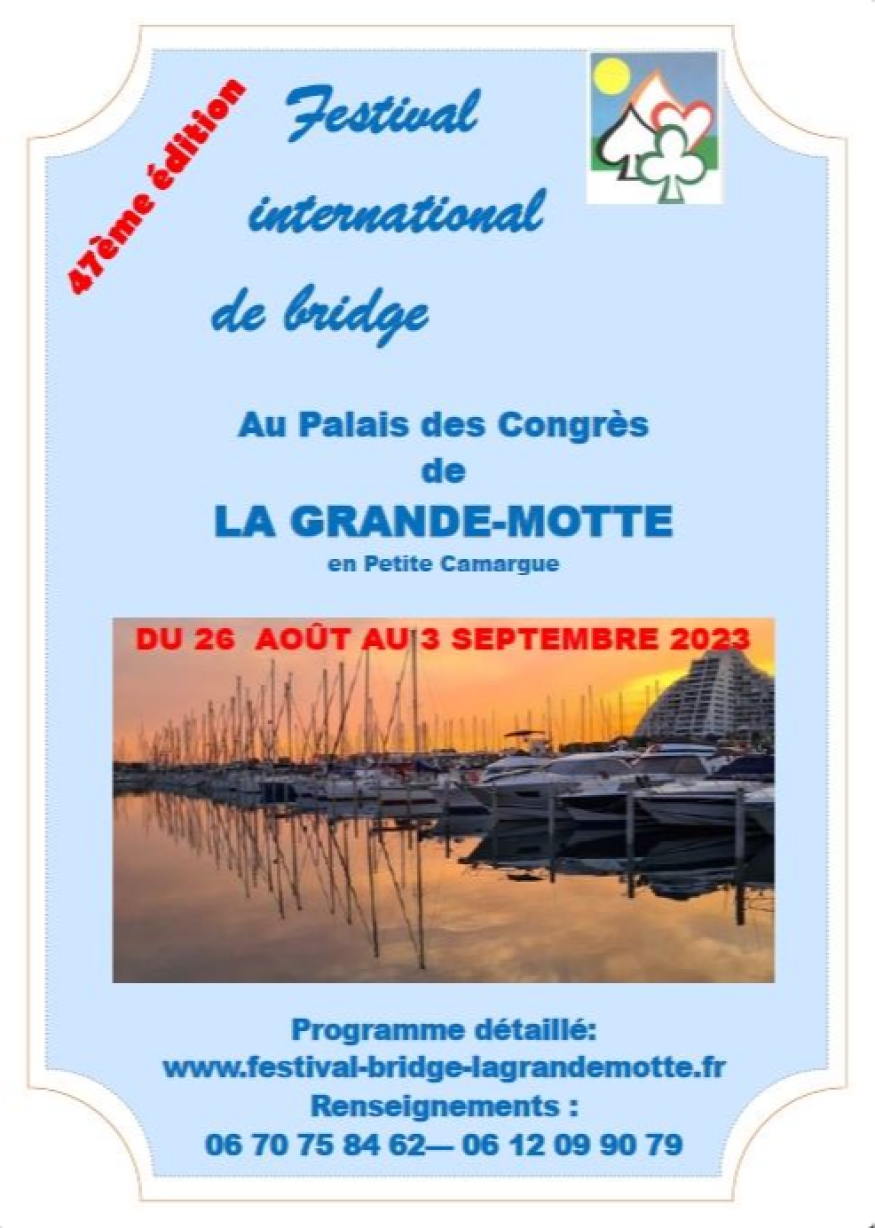 47ème Festival International de Bridge à découvrir jusqu'au 3 septembre au Palais des Coingrès Jean Balladur de La Grande-Motte.