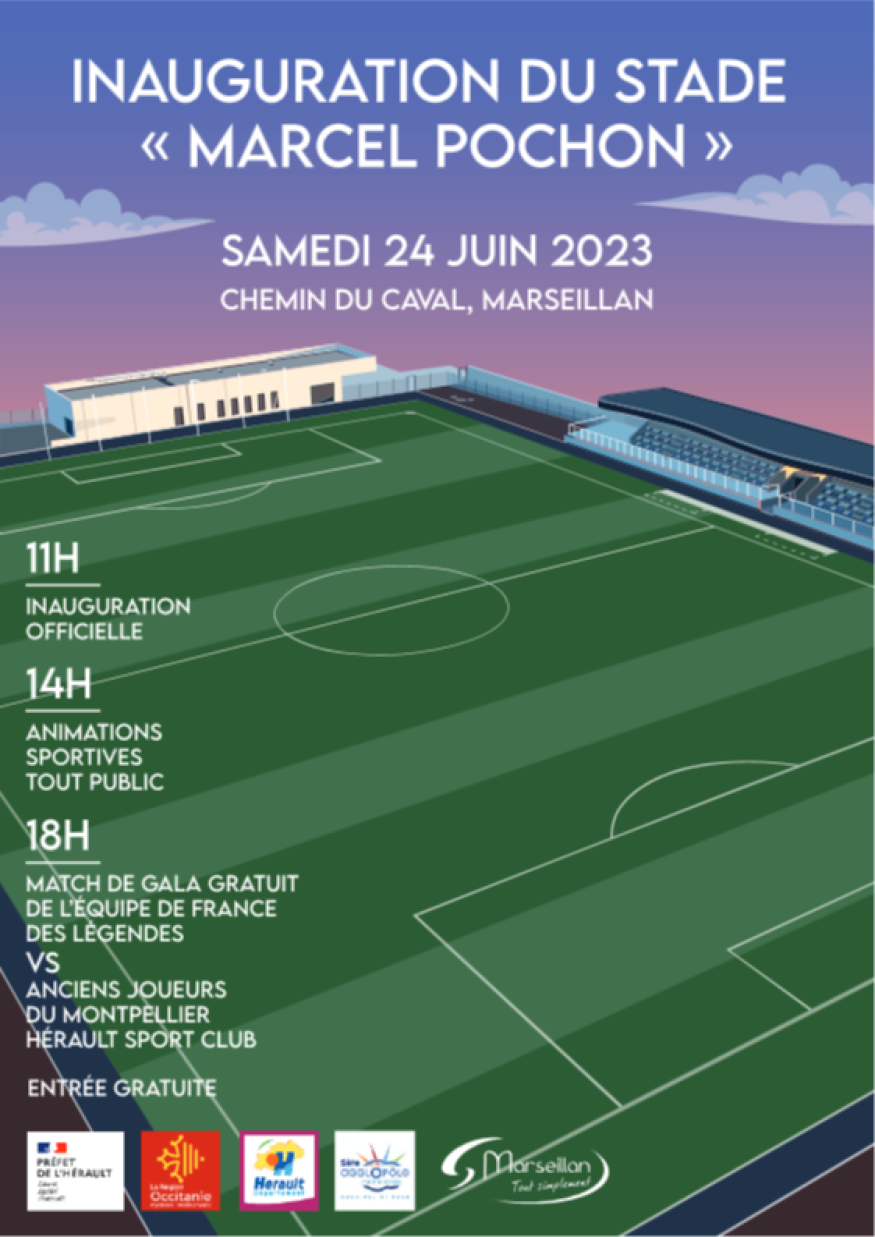 La municipalité de Marseillan est fière d'annoncer l'inauguration officielle du tout nouveau stade de football synthétique Marcel Pochon et du club house.