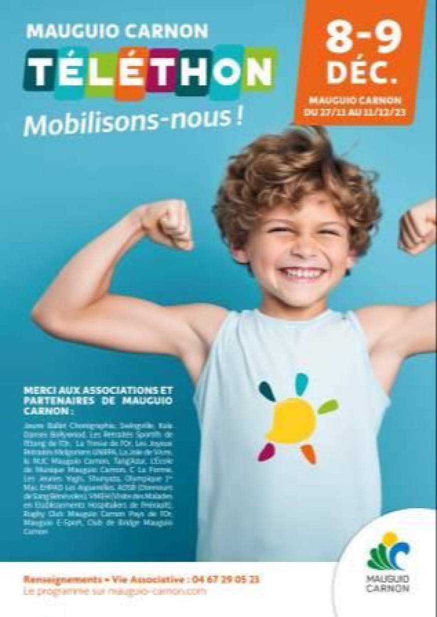 - Samedi 9 décembre (13 h 30). Rugby Club Mauguio Carnon Pays de l’Or – Stade Léo Lagrange match Mauguio - Castres (cadets) - Animations : Défis Sportifs, Tombola, Rugby toucher… Ce même jour, à 14 h30, l’UNRPA propose un loto à l’Espace Bel Air rue Léon Jouhaux.