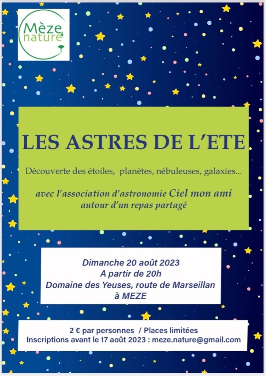 Ayez la tête dans les étoiles au Domaine des Yeuses à Mèze dès 20h