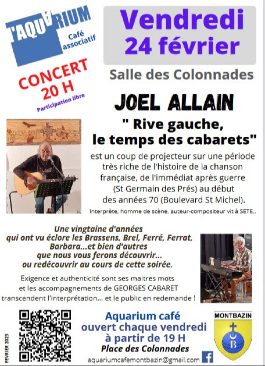 Joël ALLAIN auteur compositeur et surtout interprète qui vit à Sète se produira à l'Aquarium Café le 24 février.