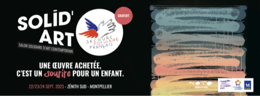 A l’initiative de la Fédération de l’Hérault du Secours populaire, Solid’Art rassemble environ 80 artistes qui mettent leur art au service des plus démunis et de la solidarité. Fort de ses 5 000 visiteurs en 2022, Solid’Art reprend ses quartiers au Zénith pour une nouvelle édition .