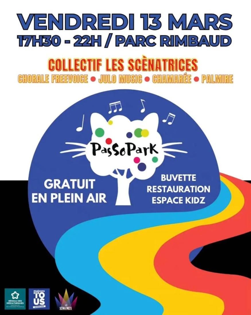 Une soirée musicale gratuite est organisée vendredi 13 mars au Parc Rimbaud, de 17h30 à 22h. L’événement s’inscrit dans le cadre du PASSOPARK, avec une édition spéciale « Les Scènatrices » mettant à l’honneur des artistes féminines de la scène locale.