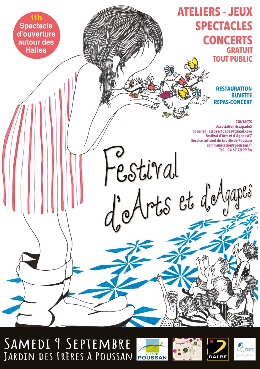 La 7e édition du festival d’Arts et d’Agapes aura lieu le samedi 9 septembre au jardin des frères de Poussan ce festival propose une multitude de jeux, ateliers, spectacles et concerts gratuits.