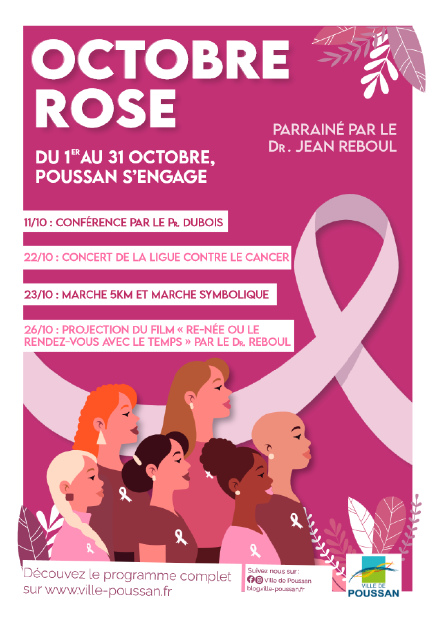 Le vendredi 27, une vente de rubans roses sera organisée par les Fées Clochettes sur le marché place de la Mairie. Le soir, à 20 h, une représentation théâtrale est proposée par la Compagnie Ombres et Couleurs à la salle de spectacle de la MJC. L’entrée est au chapeau et le spectacle est ouvert au public à partir de 12 ans.