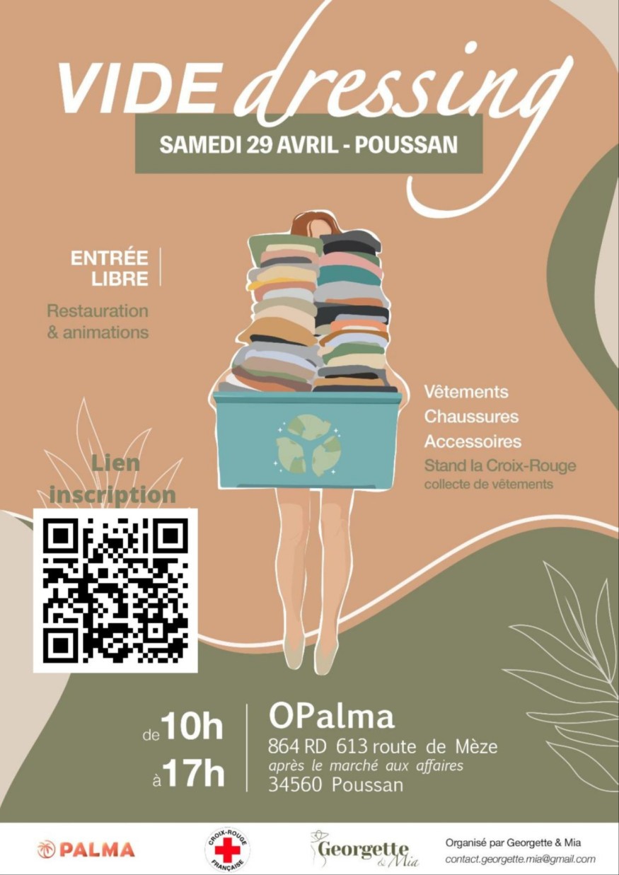 Alors, que vous soyez à la recherche d’une robe de soirée, d’un sac à main, d’un jean ou d’une paire de chaussures, venez dénicher des trésors de mode, manger et danser à notre événement vide-dressing solidaire. On vous attend nombreux et nombreuses le 29 avril au @Opalma de Poussan !