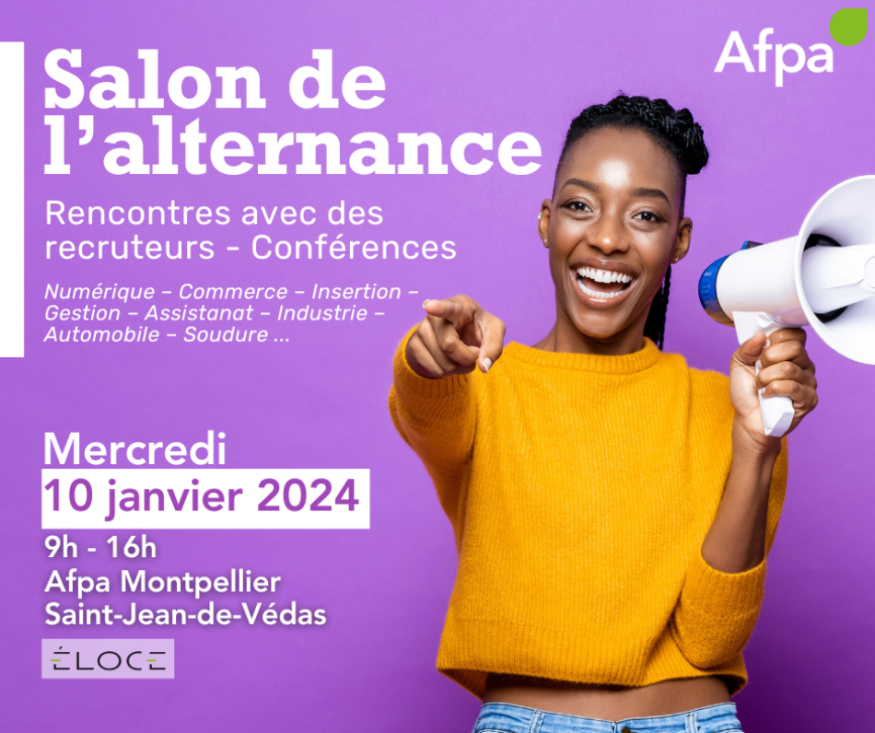 Le Centre Afpa de Montpellier Saint-Jean-De-Védas organise le Salon de l’Alternance le mercredi 10 janvier 2024, de 9h à 16h, au 12 rue Jean Mermoz, Saint-Jean-de-Védas.