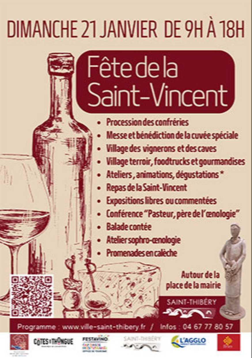 La fête de la Saint-Vincent, événement œnologique et patrimonial, aura lieu à Saint-Thibéry dimanche 21 janvier de 9h à 18h.